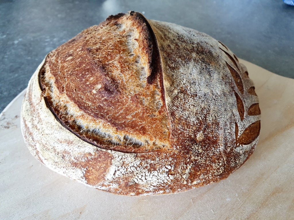 Jag fick en beställning av min pappa på ett ljust surdegsbröd. Jag bakar väldigt sällan ljust bröd, för jag tycker de är smaklösa utöver att de är onyttiga. Men idag gjorde jag det, och det slår mig igen att det är så mycket lättare att baka med siktat vetemjöl. Det här brödet är bakat med ett färskmalet och stenmalet siktat vetemjöl där det finns rester av kli och grodd. Hade jag istället valt att baka med ett valsat vitt vetemjöl eller ett stenmalet siktat vetemjöl där de tagit bort grodden, hade det varit ännu lättare. Om du precis som jag bakar med färskmalet fullkornsmjöl men titt som tätt tittar på alla vackra bröd på Insta och kanske undrar hur de lyckas. Då är svaret det – de bakar med vitt mjöl. Det är så mycket lättare då. Det du inte ser på Insta är hur det smakar. Ditt och mitt bröd är garanterat betydligt godare!
