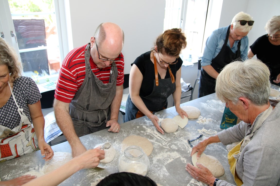 Våra barn kallar kursdeltagarna mina gäster, och jag tycker det är ett väldigt trevligt och passande namn. Bakstudion ligger separat men i anslutning till det hus vi bor, så det är mina gäster. Gästerna kom på lördag morgon. Jag kände till några av dem, men de flesta var okända. Det blir som en överraskning när man träffar någon som man tidigare bara haft mailkontakt med. Jag älskar att lära känna nya människor, så för mig är det helt fantastiskt att få hem ett gäng okända gäster. Främst är det dock jag som pratar, men jag får ändå chansen att lära känna deltagarna något. Det är otroligt roligt att baka tillsammans. Det är rogivande. Samtidigt är det en stor anspänning för mig, för jag vill så gärna att alla ska vara nöjda och att de ska ta in allt jag berättar. Det blir mycket information på två dagar och både de och jag är nog ganska trötta när kursen är slut. Jag var i vart fall helt färdig. Nu är jag så otroligt nyfiken på hur var och en kommer gå vidare i sina egna kök. Jag skulle vilja vara en liten fluga på axeln som fick se när de bakade.