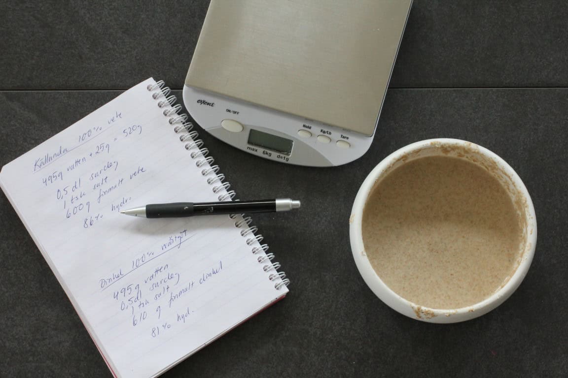 Sedan jag kan minnas har jag alltid bakat på en höft. Det vill säga jag har hällt i de olika ingredienserna utifrån känsla och varken vägt eller mätt. Det har funkat bra, och det är så jag tycker det är roligast att baka. MEN det är svårt att bli bättre när jag inte vet exakt vad jag gjorde sist. Ett bra bak kan då inte upprepas och ett dåligt lär jag mig inget av. Därför har jag istället blivit vän av ordning och jag kan verkligen rekommendera det. Vill du bli bättre på att baka behöver du väga allt du häller i bunken och skriva ner vad du gör.